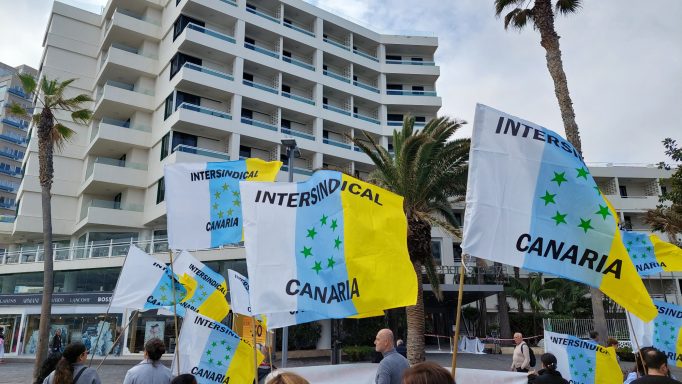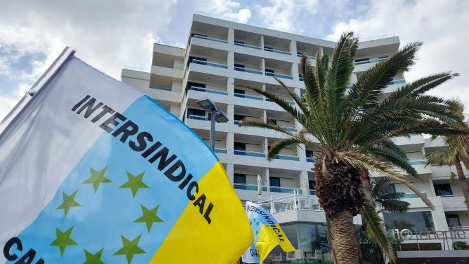 Concentración de Intersindical Canaria delante del Hotel H10 Tenerife Playa del Puerto de la Cruz